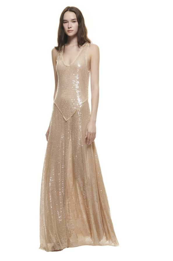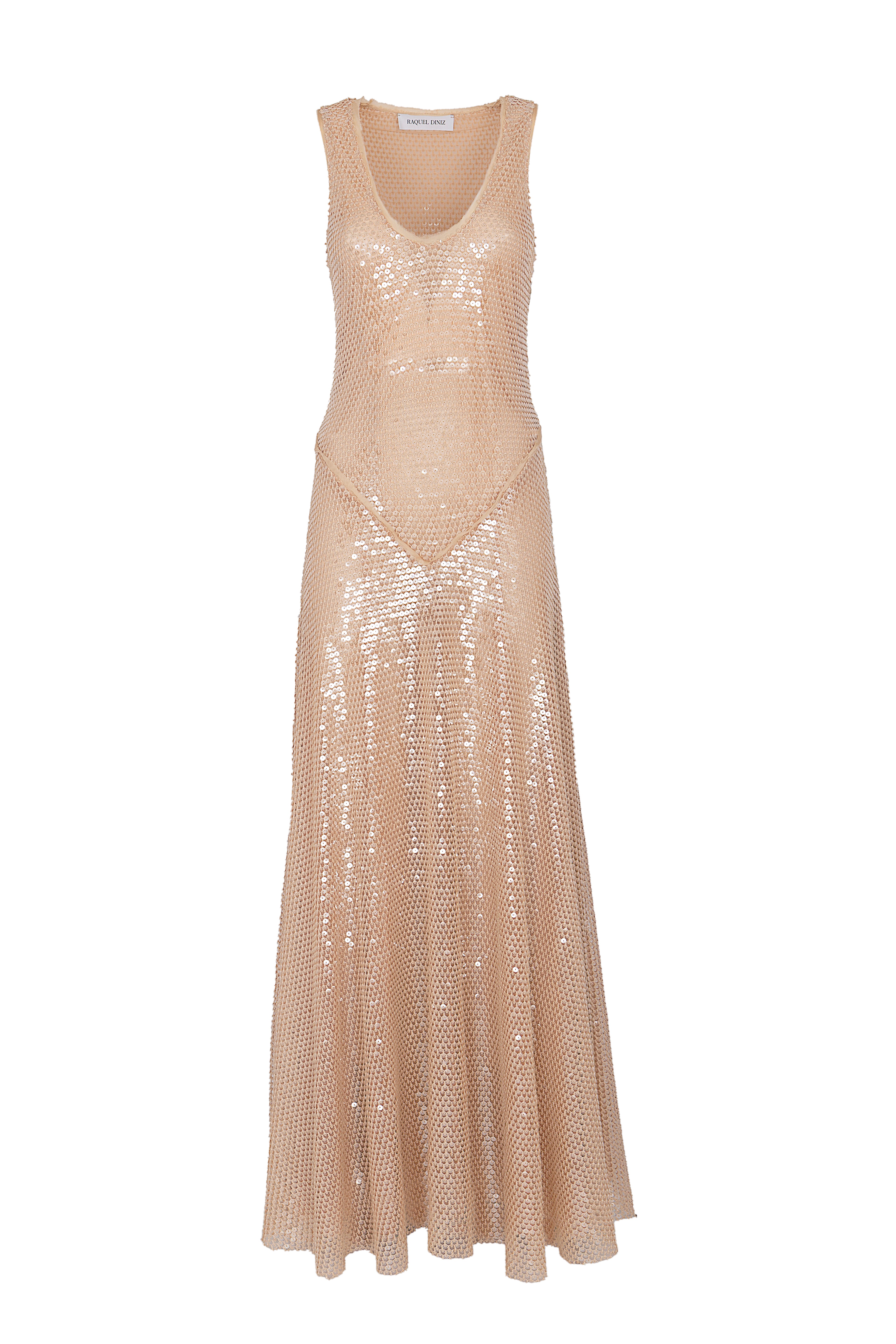 Woman's Long DressLined100% PL - PaillettesNudeMade in Italy