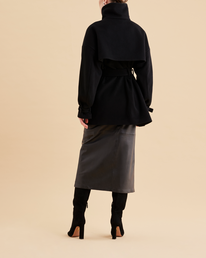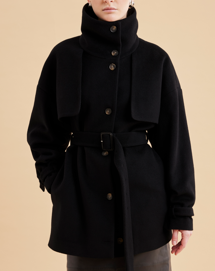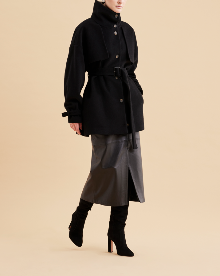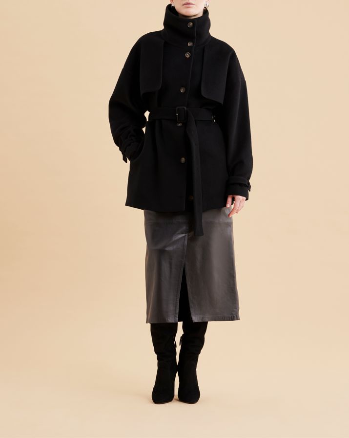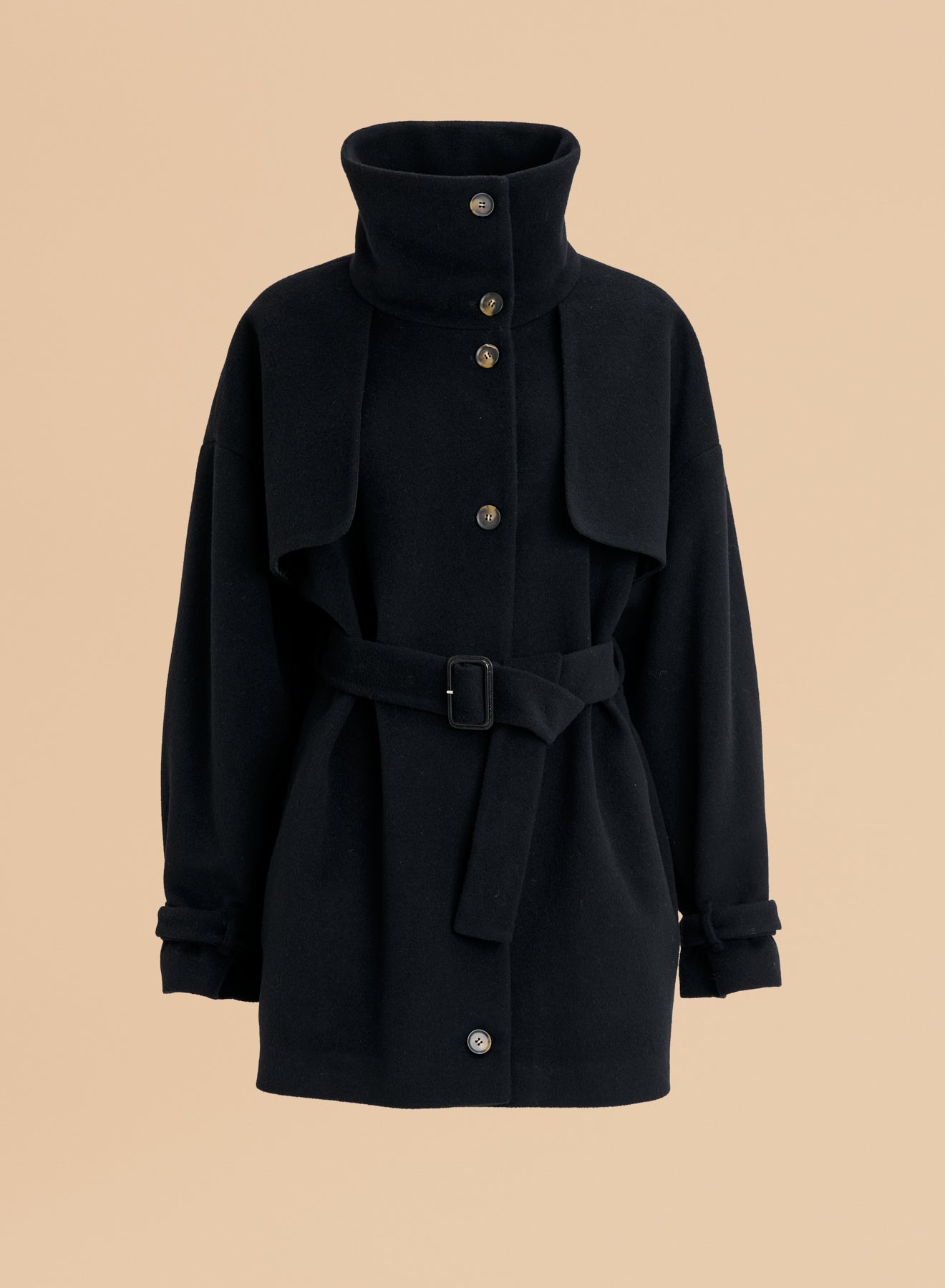 Woman's Trench 74% Wool 26% Cashmere BlackMade in Italy
