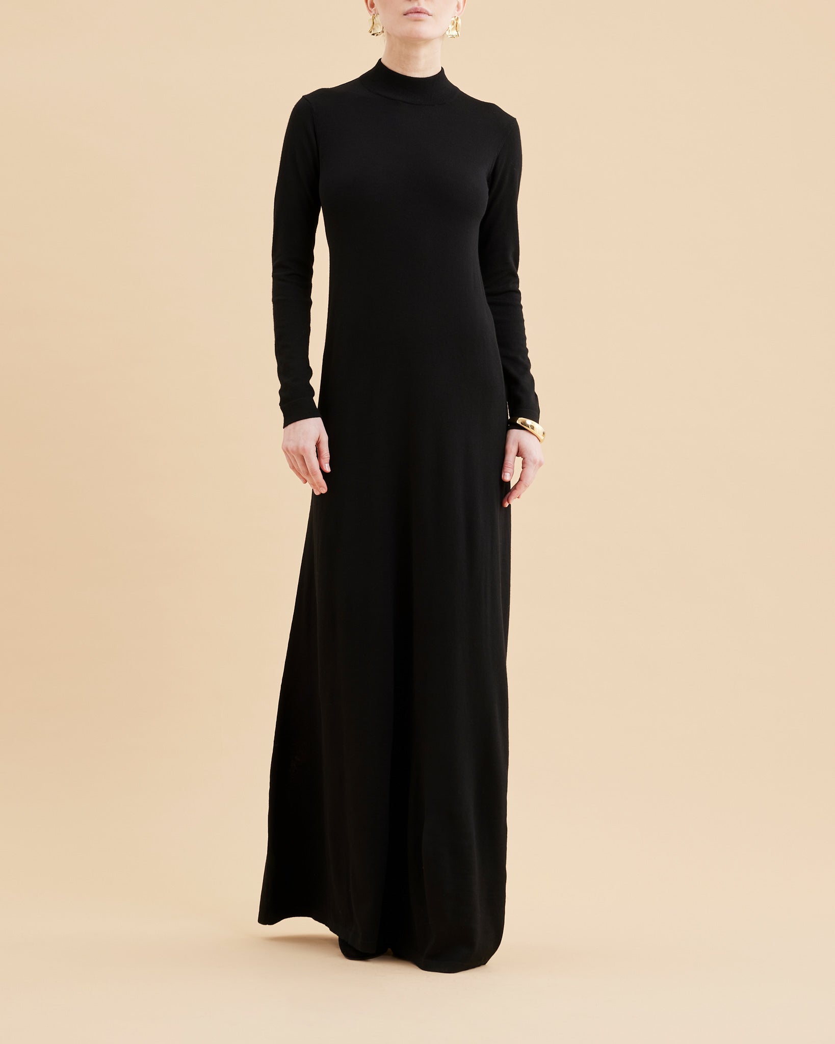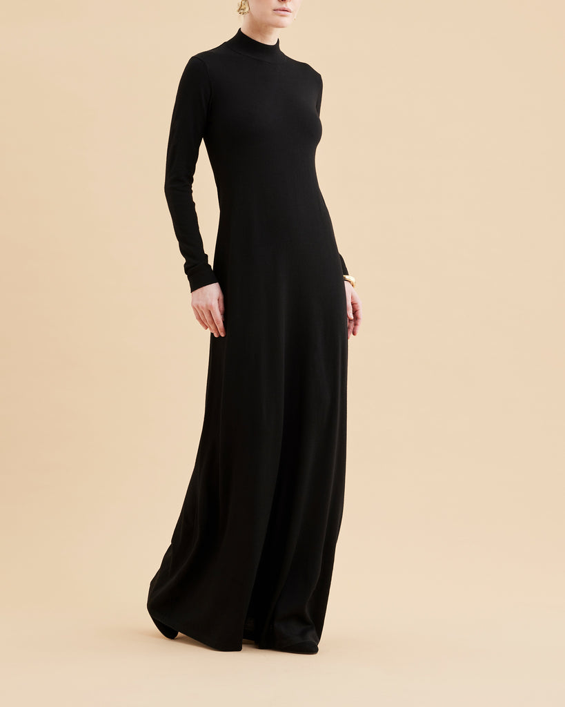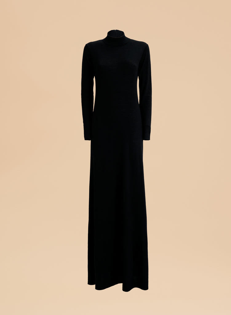 Woman's long dress100% Extrafine Merino WoolBlackMade in Italy